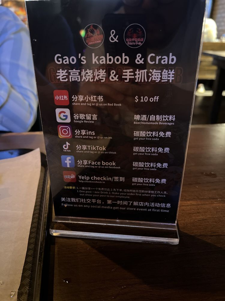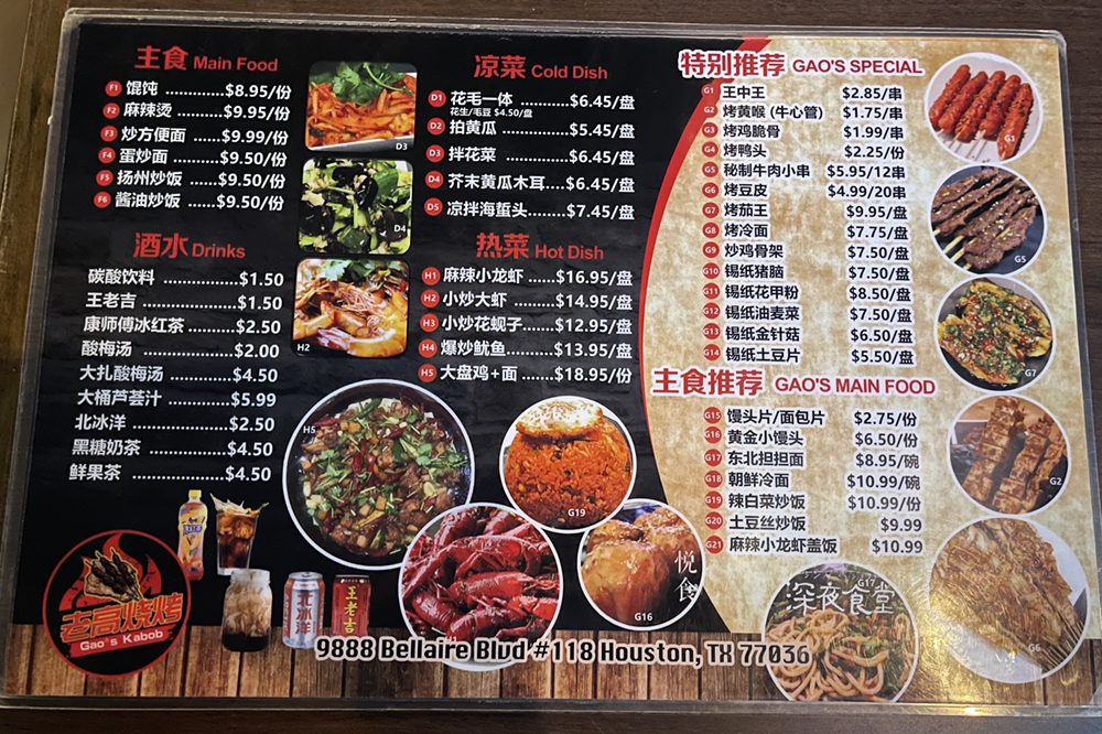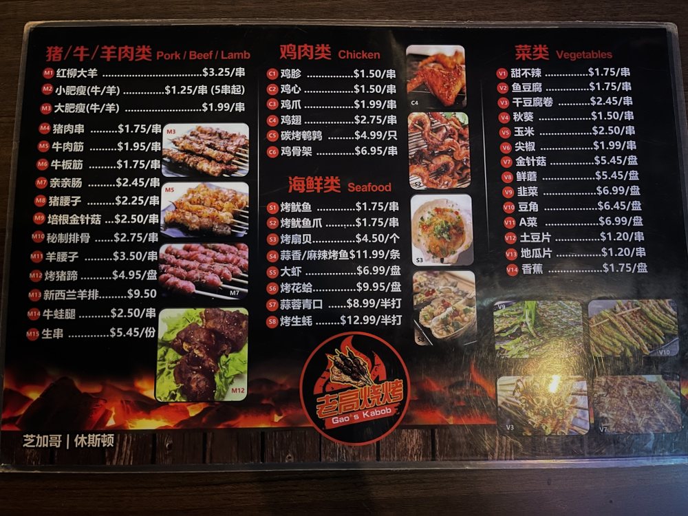 Gao's Kabob is a Chinese BBQ restaurant located in Houston, Texas, offering a variety of grilled skewers and vegetarian options. The menu includes favorites like BBQ Beef Tendon, BBQ Chicken Gristle, and Corn Kernels. Customers praise the tasty food, friendly service, and diverse offerings. The atmosphere is described as vibrant, with live music adding to the experience. Popular dishes include lamb skewers, tofu skin, and fresh milk tea. While some reviewers mention crowded seating, the overall consensus is positive for this Asian-owned establishment. With options for takeout, delivery, and catering, Gao's Kabob caters to a wide range of preferences. Overall, Gao's Kabob receives high marks for its delicious flavors, welcoming ambiance, and efficient service.
